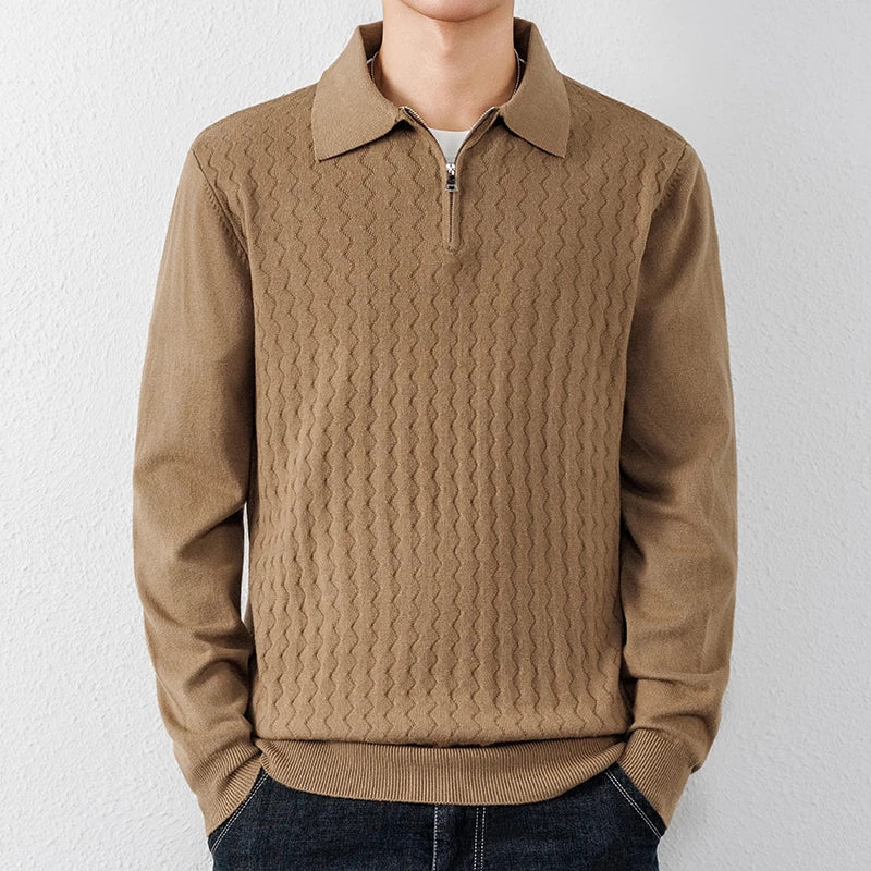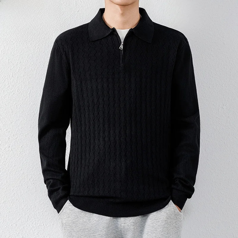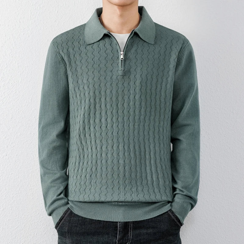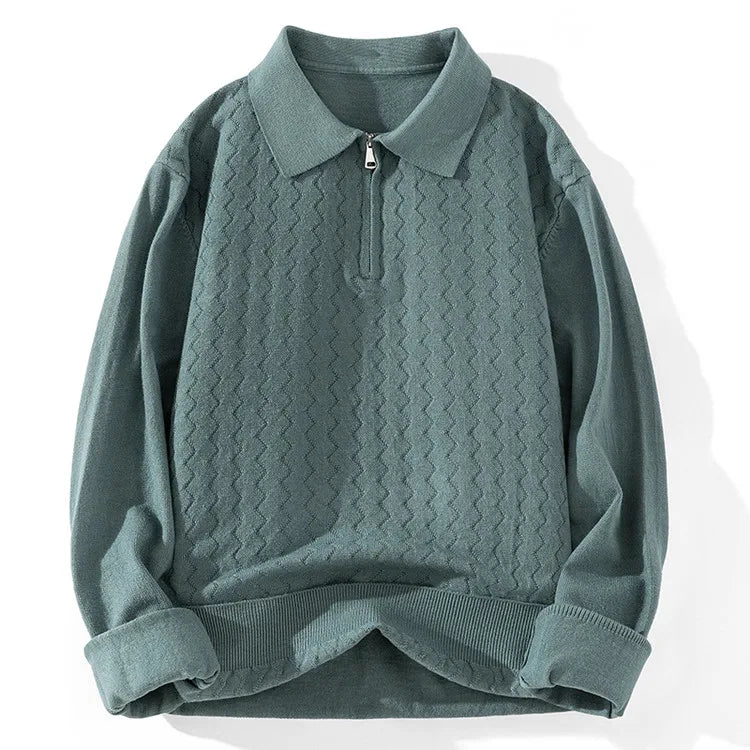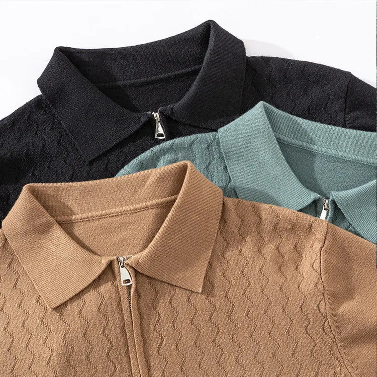 👔✨ Suéter Tipo Polo con Cremallera AURA LANE – Hombre